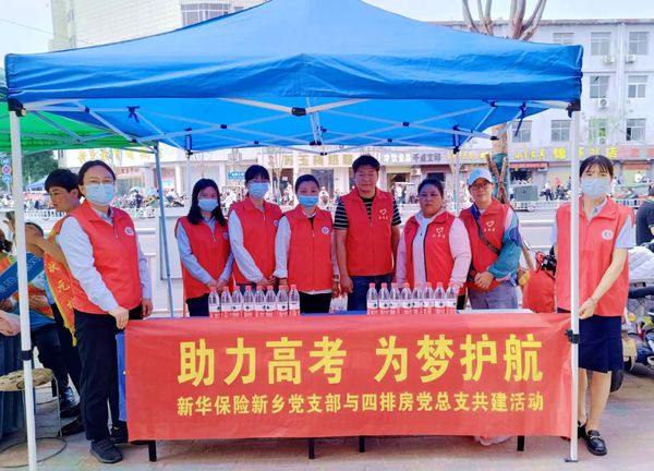 为统筹开展好助考活动,新华保险新乡中支党支部联合社区党组织按照市城管局统一规划,安排党员、志愿者提前到场在指定位置设立志愿服务站并做好各项物品准备工作。活动现场,志愿者们在送考途中、考试期间、散场返回途中为考生、家长主动递上一瓶瓶水,送上一声声“加油”祝福,赢得了大家的纷纷赞誉。