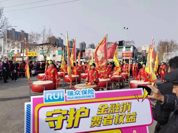 当天正值农历二月初二龙头节,孟营村广场上锣鼓喧天、金鼓齐鸣,村民们身穿色彩艳丽的传统服饰,自发在广场上扭秧歌、踩高跷,热闹非凡。瑞众人寿新乡中支消保宣传员们向参与表演及观看表演的群众发放宣传折页及小礼品,普及金融知识,提醒大家一定要到正规的金融机构办理理财产品,警惕网络贷款、非法借贷,共同营造健康和谐的金融环境。